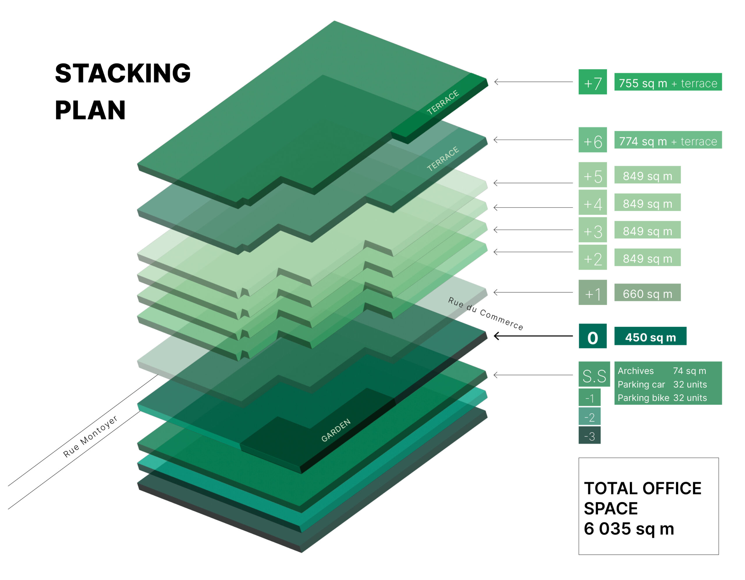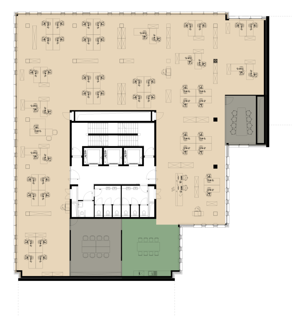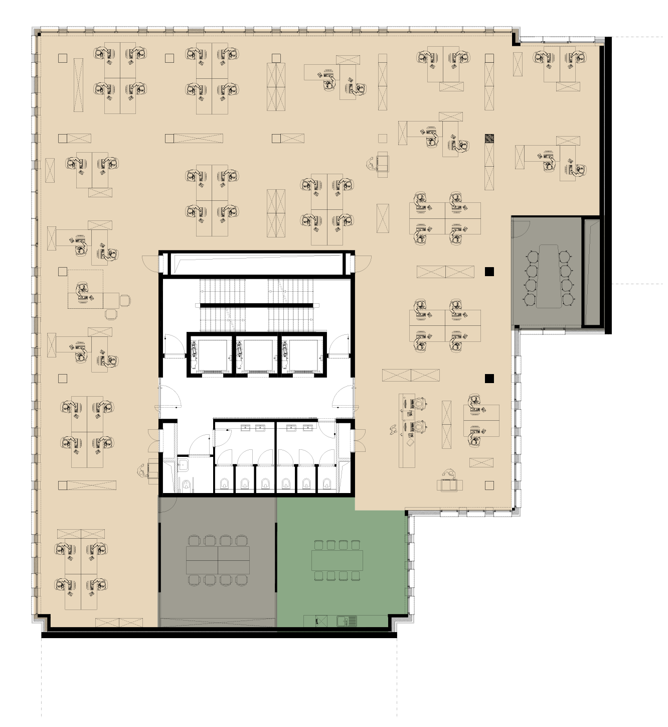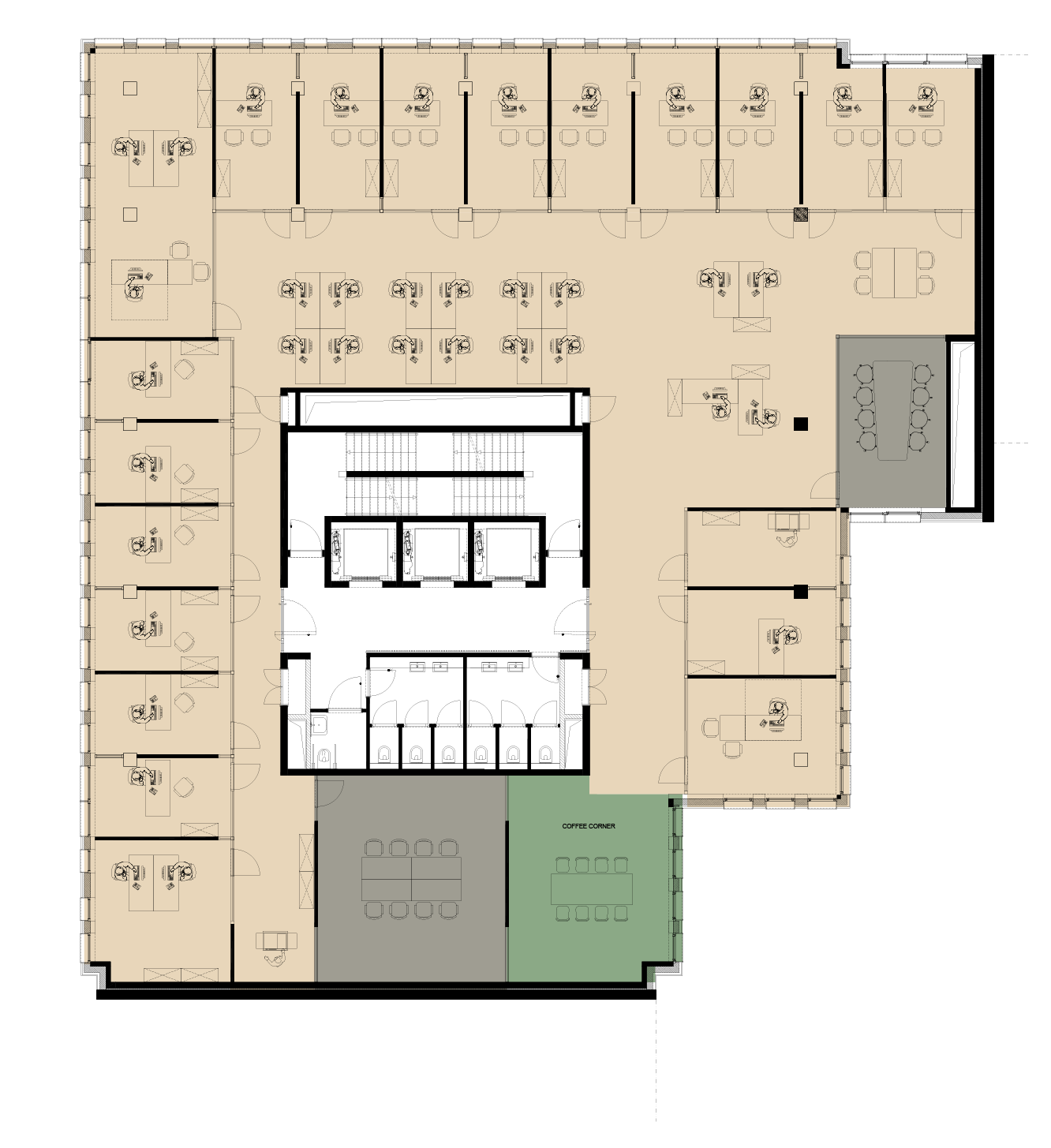 Intentionally subtle, the plan’s modularity allows for a large number of arrangements and significant flexibility of use over time, including hybridisation, new office usages or a complete work environment conversion.