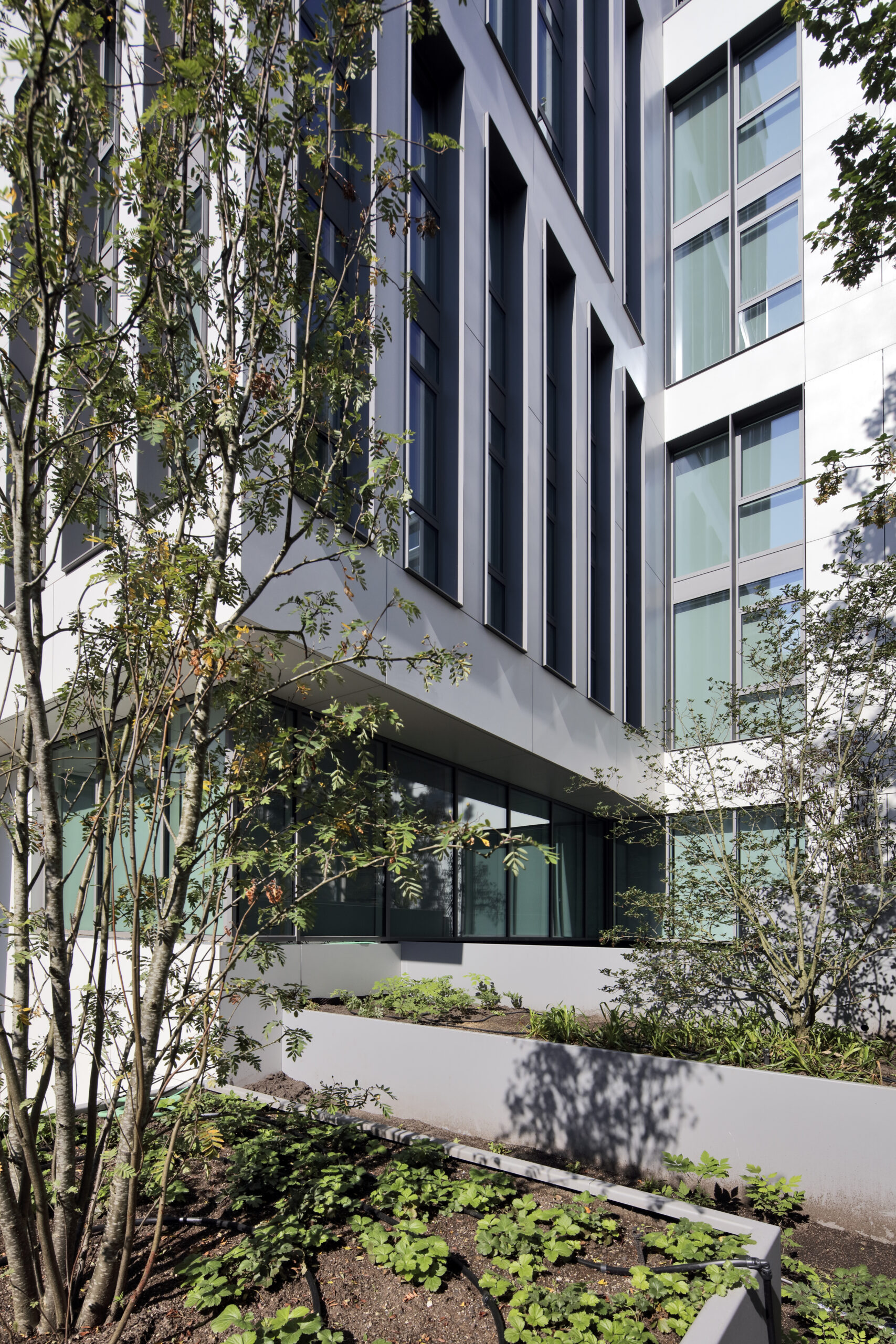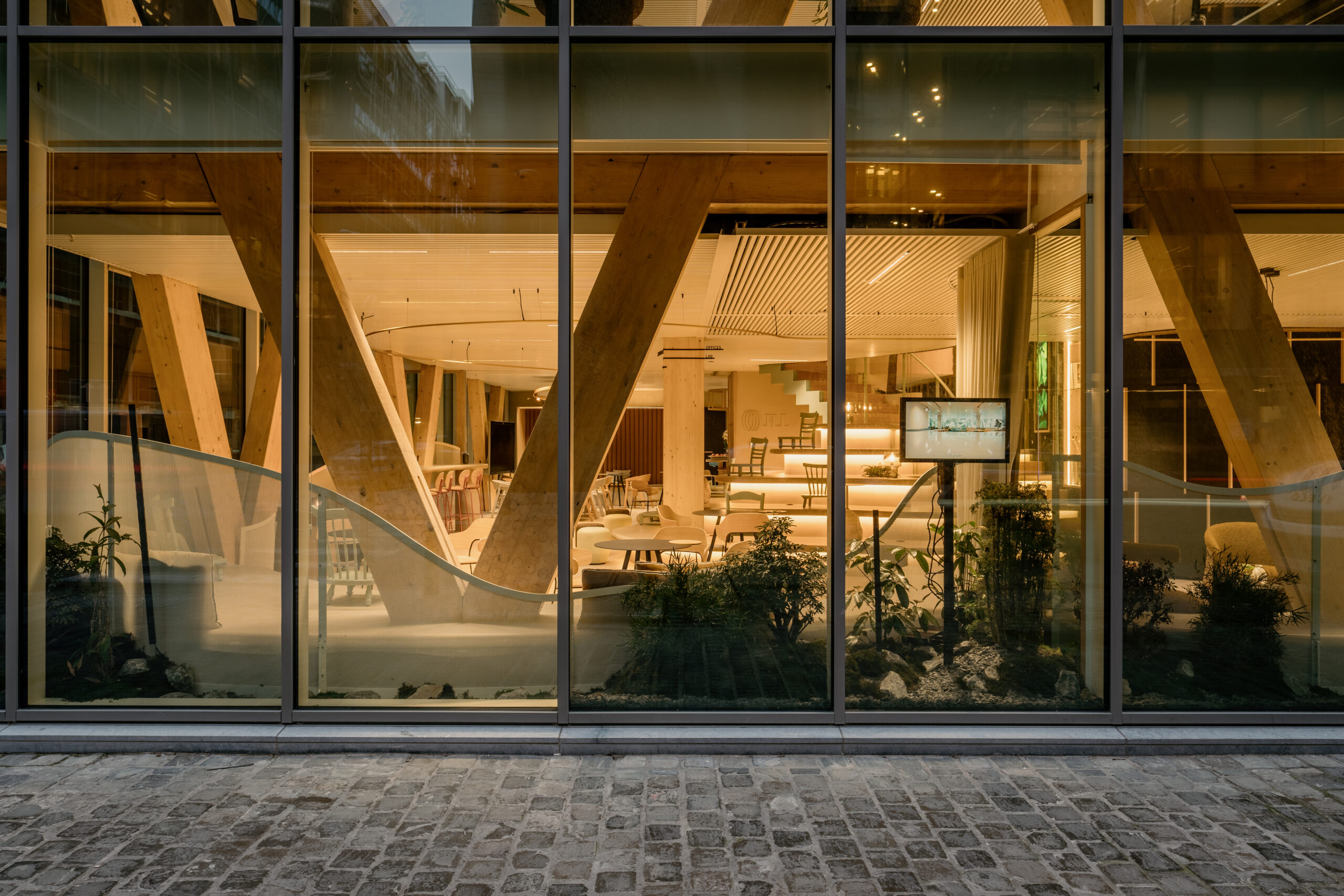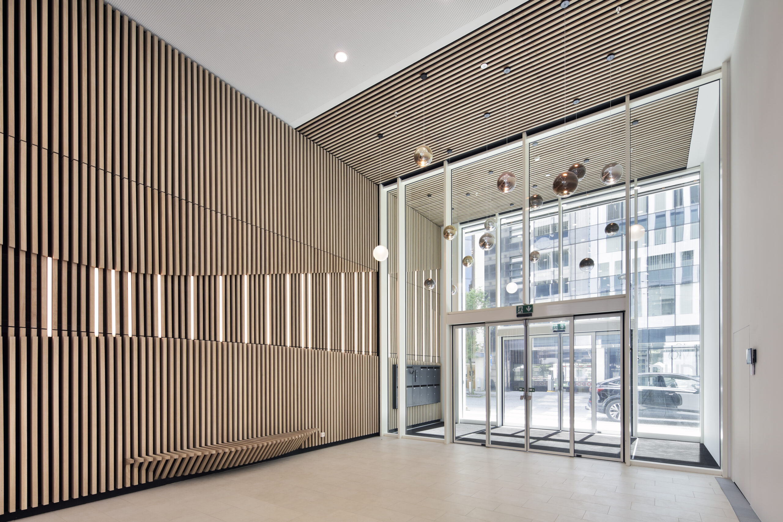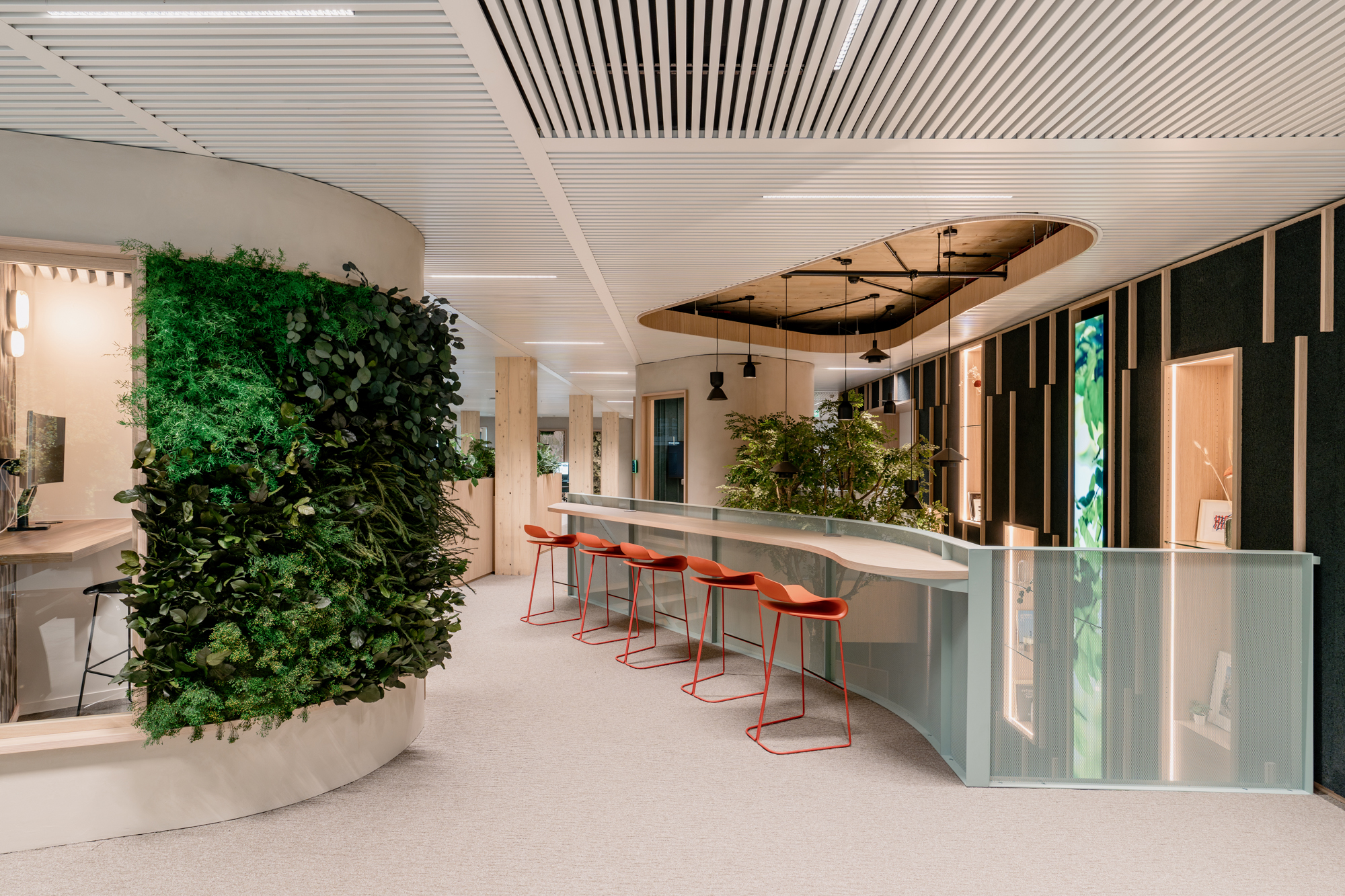 Biophilia is at the centre of the design of M10. The goal is to maintain contact between humans and nature, even in urban spaces. In a biophilic approach, natural wood is strongly present in all interior spaces, as are outdoor plantations.